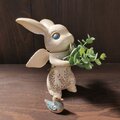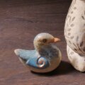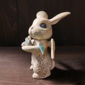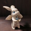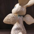 翼を広げたうさぎの置物です。小さなアヒルを抱き何かお話が始まりそうです。アヒルは自立させ腕に軽い造花等を持たせる事も出来ます。羽のペンダントが自由なうさぎによく似合います。