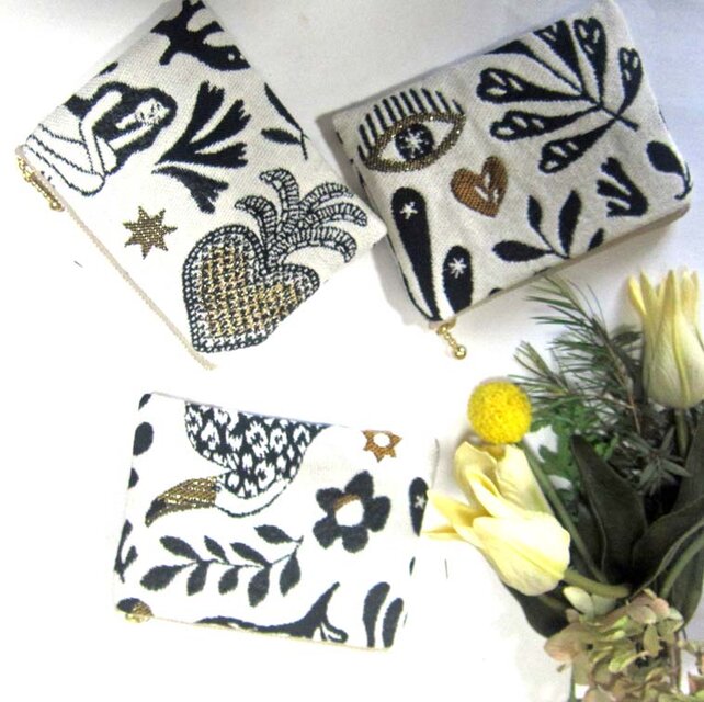 選択可フランス生地 エデンの園 エバ 目 オニオオハシ 葉 ポーチ カード入れ コスメ入れ 鍵入れ