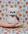 白猫になりたかった黒猫ちゃん 羊毛フェルト白ねこに成りたかった黒ねこさんは愛らしくて可愛いですね。抱きしめてたく成る位可愛いです。大切にしますねいつも、可愛い作品をありがとうございます❣️