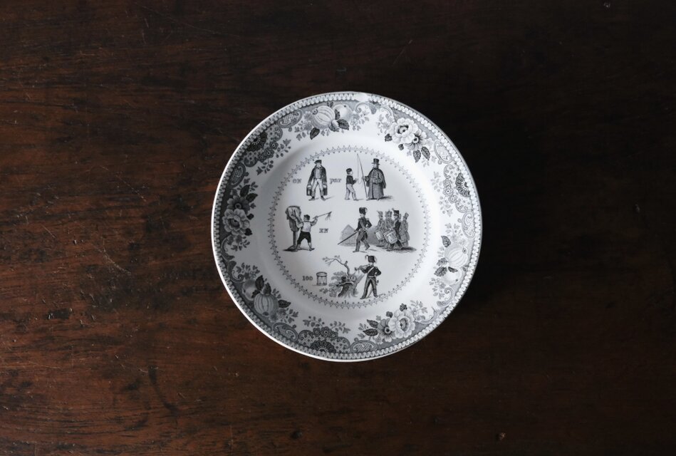 なぞなぞ グリザイユ皿をご紹介いたします。