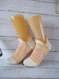 ドイツのブランド Opal Cotton KFS 263 カーネリアン & KFS 207 コットンホワイトと名前のついている糸で編んだ chiharu.amukoのIDでインスタグラムで活動されている方のレシピで編んだコットンソックスです。