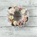 淡いブルーのアジサイがまるで春風を運んできてくれそうなリースです。
