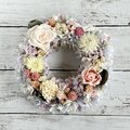 花材・・・バラ、アジサイ、シルバーデージー、ボアプランツ、ユーカリ、アンモビューム (プリザーブドフラワー)