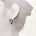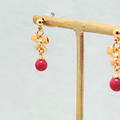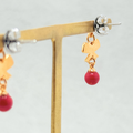 ラス1 5mm リボンと コーラル/珊瑚 K18GP RHP ピアス - petit ribbon