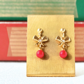 まるいサンゴに、リボンモチーフを添えたスタッドピアス。