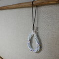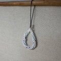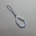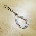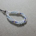 白いビーズに青と赤の模様の入った爽やかな色のストラップです。少し重量感がありますが、丈夫で、お手持ちのバッグやスマートフォン、カギなどに取り付けることで、日常にさりげない華やかさをプラスできます。