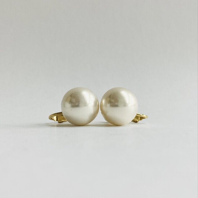 樹脂パールラウンドイヤリング/約14mm/ホワイトベージュ/made in japan