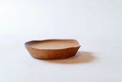 このお皿は、正円に挽いてからあえてランダムな形になるように加工しています。