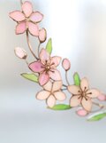 サーモンピンクのガラスはアームストロング社(アメリカ)のガラスです。所々白い筋が入っているので花びらの表現に一役買っています。