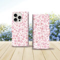 桜イラストをいっぱいに敷き詰めた桜のじゅーたん(New Design)のヌメ革風の風合いが特徴のスタンダード手帳型スマホケースです。