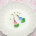 チューリップの形のチェコビーズがゆらゆら揺れる可愛いピアス/イヤリングです。