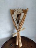 使用した古紙一枚とプリーツを寄せたクラフト紙でラッピングし、リボンの代わりにラフィアを結んだ状態でお届けします。