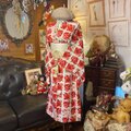 【着物 リメイク セミロング ワンピース ドレス 洗える 化繊 名古屋帯サッシュベルト 和洋折衷 レトロ 古着 ハンドメイド 咲き誇る、わたし色の椿たち。 KW-932】