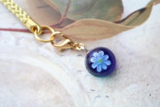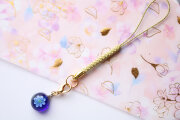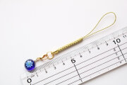 ガラスで制作した、ブルーデイジーの根付です。裏は平で半球形です。