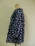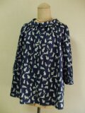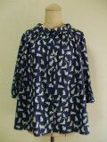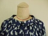 リバティタナローン ミャオウ(Meow) 小さいショールカラーのブラウス 着丈64cm S~Mサイズ ネイビー
