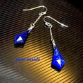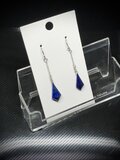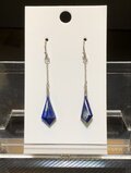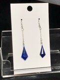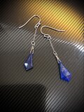 天然石ピアス パワーストーン ラピスラズリ 変形ダイヤ ファセットカット 約14.8~17×7.8~10.1×4.5~6mm アフガニスタン産 ハンドメイド シルバーカラー チェーン式 セミロング フックピアス