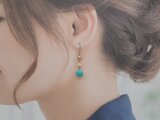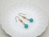 ターコイズカラーのメロンビーズとパールの上品な雰囲気のピアス/イヤリングです。