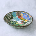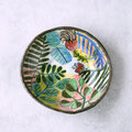 カラフルな葉と蝶の陶器ボウル