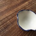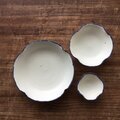 白色釉を掛けて縁にインディゴ釉を彩色していますた豆鉢です