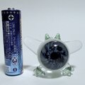 耐熱ガラスで作られたモンスター型のオブジェです。ひとつひとつ虹彩や体の色が違うので、シリアルナンバーが背中に貼ってあります。