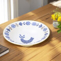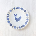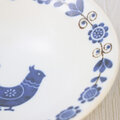 愛らしい小鳥と花模様が描かれた、美濃焼の「ピジョンヌ」浅ボウル。