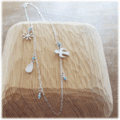 シンプルなシルバーチェーンにトリとしずくのモチーフが揺れます