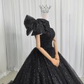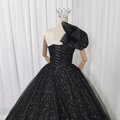パーティードレス ブラック ワンショルダー キラキラグリッターチュール リボン 編み上げ 演奏会