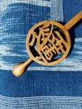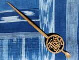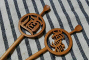 ご注文をいただいてから、丸平打のかんざしの丸の中に文字をデザインし、電動糸鋸で一箇所ずつ穴を開けて切り抜き文字にします。(写真をご覧ください)
