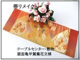 【(16)2235】85.5cm/美品・扇面亀甲鴛鴦花文様/テーブルセンター・敷物/和風・帯リメイク/日本のお土産