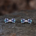 6 月の誕生石アレキサンドライトピアス カラーチェンジストーン蝶ネクタイちょう結びスタッドピアスバタフライノットジュエリー