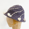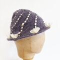 フリル付きパンジーのラルカドールの花びらのように軽やかで春を感じさせてくれる帽子です。紐が付いているので、後部でサイズ調節できます。また、顎下で結ぶこともできます。