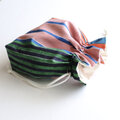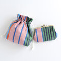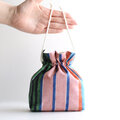 おしゃれな配色のマルチストライプ生地を使ったマチ5cmの巾着ポーチです