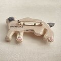 リピートです。今度の作品も大変可愛く、ぬくもりを感じます。木彫りですので軽やかなのも良いですし、毛並みがまるで本物の猫のように見えます! 付けない時は前回購入したブローチとセットで飾ります。 今回もありがとうございました!