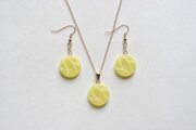 半透明のイエローにラメを乗せ、水面のような模様を描いた、明るく爽やかなペンダント。
