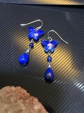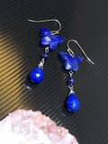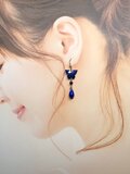 天然石ピアス パワーストーン ラピスラズリ アゲハ 蝶々 バタフライ 約9.5~10×14~15×3.5~5mm ラウンド 約4㎜ ドロップ ブリオレットカット 約8~13×5~8×5~8mm アフガニスタン産 ハンドメイド シルバーカラー セミロング フックピアス