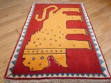 商品名: ペルシャ オールドギャッベ ライオン 赤 黄色 RJ13551