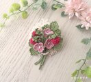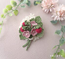 実や葉はレース糸、お花は細い刺繡糸で編んでおります。繊細で愛らしい雰囲気のブローチです。