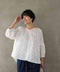 上品な抜け感と大人かわいいシルエット オリジナルドットプリントの麻ブラウス 250404-1