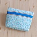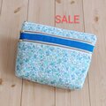 【値下げ】4段ファスナーポーチ 可愛く便利 小花柄 20cmバッグインバッグ ブルー 307