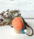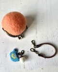手のひらサイズの球体の羊毛フエルトがま口で、バックの外付けができるタイプです。