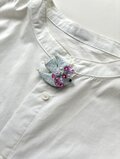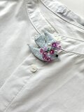 サイトの写真よりなお美しいブローチが届きました!白なのに光でさまざまな色が差し、季節を問わずどんな服にも映えそうです。 包装もとても丁寧で、作品への愛と購入者への心遣いが溢れており、とても幸せな気持ちになりました。 素敵な作品をありがとうございました!きっとまたご縁がつながる気がします。