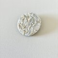 作りました。糸の優しい輝きを見ているとなんだかうれしくなる。そんなブローチにしたくて作りました。