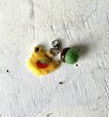 手のひらサイズの球体の羊毛フエルトがま口で、バックの外付けができるタイプです。