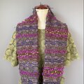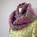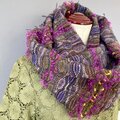テクスチャーとカラーの組み合わせが楽しい手織り生地を筒状に縫い合わせ、ボリューミーなスヌードに仕立てました。