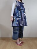 かすりのパッチワークが とっても丁寧で 美しく 色とりどりの生地も素敵にコラボ! 刺し子も 綺麗なラインで 美しい。 生地を 惜しげなく贅沢に使って 普通のパンツだと 2枚は 十分取れそう。 ワンピースにすれば とっても素敵になりそう。 プチプレゼントも 可愛い。