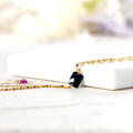 チェッカーオクタゴンカットが施された10mmのアイオライトを、2連の繊細なチェーンに一粒セッティング。