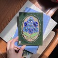 深みのあるブルーが凛として美しい小花をあしらった美しいデザイン。Aimoのデザインしたレースのようなフレームも愛らしい逸品です。