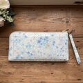 L字ファスナー長財布・ドイツ刺繍リボン(いちご×ブルー系花柄)