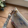 可愛いいちご柄のドイツの刺繍リボンと優しい雰囲気の花柄プリント生地を使用して、長財布を作りました。