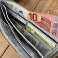 薄型ですが、お札を折らずに入れられて、カードは12枚入ります。